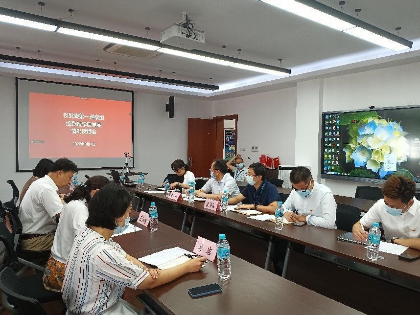 2022年9月1日,金沙集团wwW3354CC党委召开巡察情况反馈会。校党委常委、副校长吴明红,校党委第一巡察组组长王建军、副组长孙玉华,巡察办常务副主任崔海霞、纪检监察办公室李岩、组织处关艳芳、校党委第一巡察组全体成员、金沙集团wwW3354CC党政领导班子成员、师生代表参加会议。