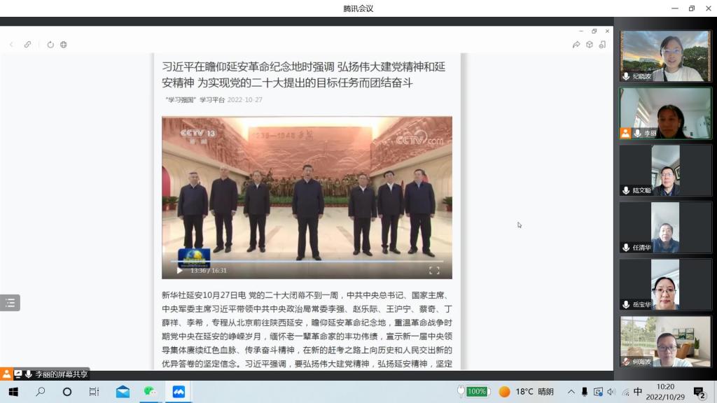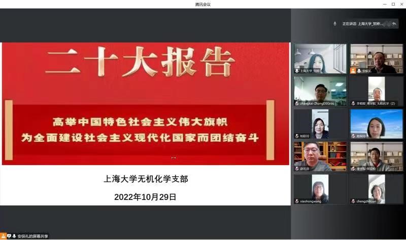 把党的二十大精神学习好、宣传好、贯彻好,是当前和今后一个时期的首要政治任务。近日,化学学科党总支的7个党支部组织开展线上、线下多种形式的专题组织生活会,全体党员积极参与,认真学习了党的二十大报告,交流了学习体会。