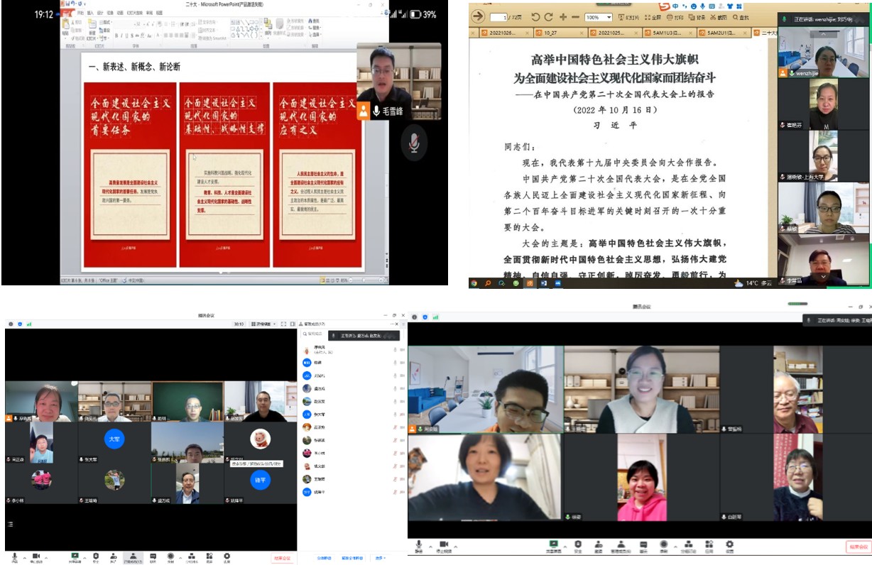10月20日至11月5日,我院数学系基础数学、应用数学、计算数学、运筹学与控制论四个党支部开展了“学习贯彻落实党的二十大精神”的专题组织生活会,大家围绕学习贯彻落实党的二十大精神,以及《中国共产党章程(修正案)》的决议,进行深刻的学习与讨论。与会党员踊跃发言,表示认真学习宣传贯彻党的二十大精神要始终走在前列,要提高政治站位,把握历史主动、要加强思想淬炼,提升看家本领、要坚持知行合一,彰显使命担当。