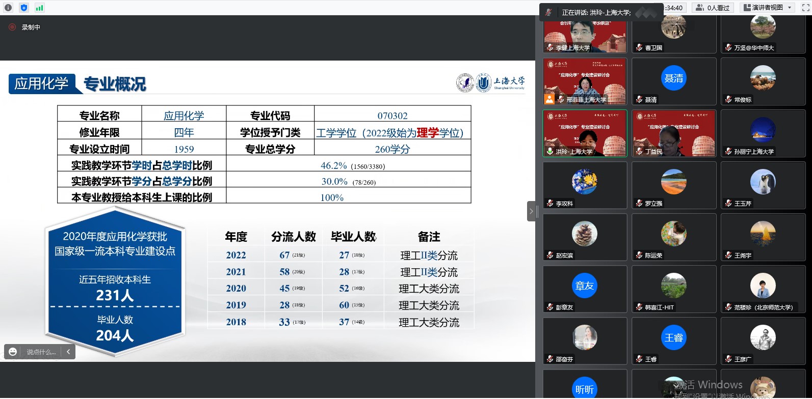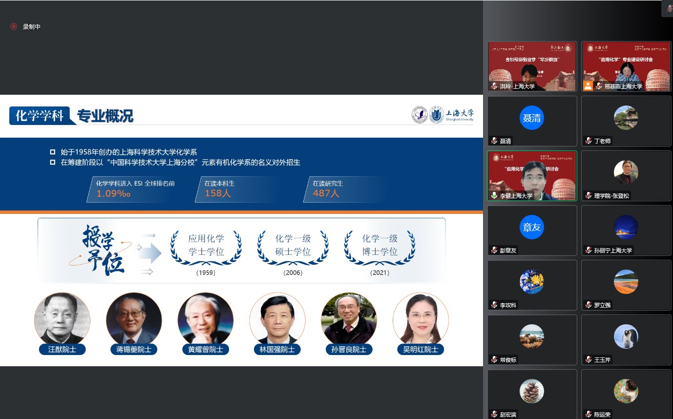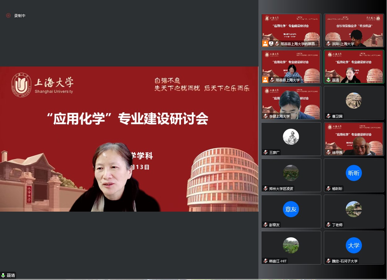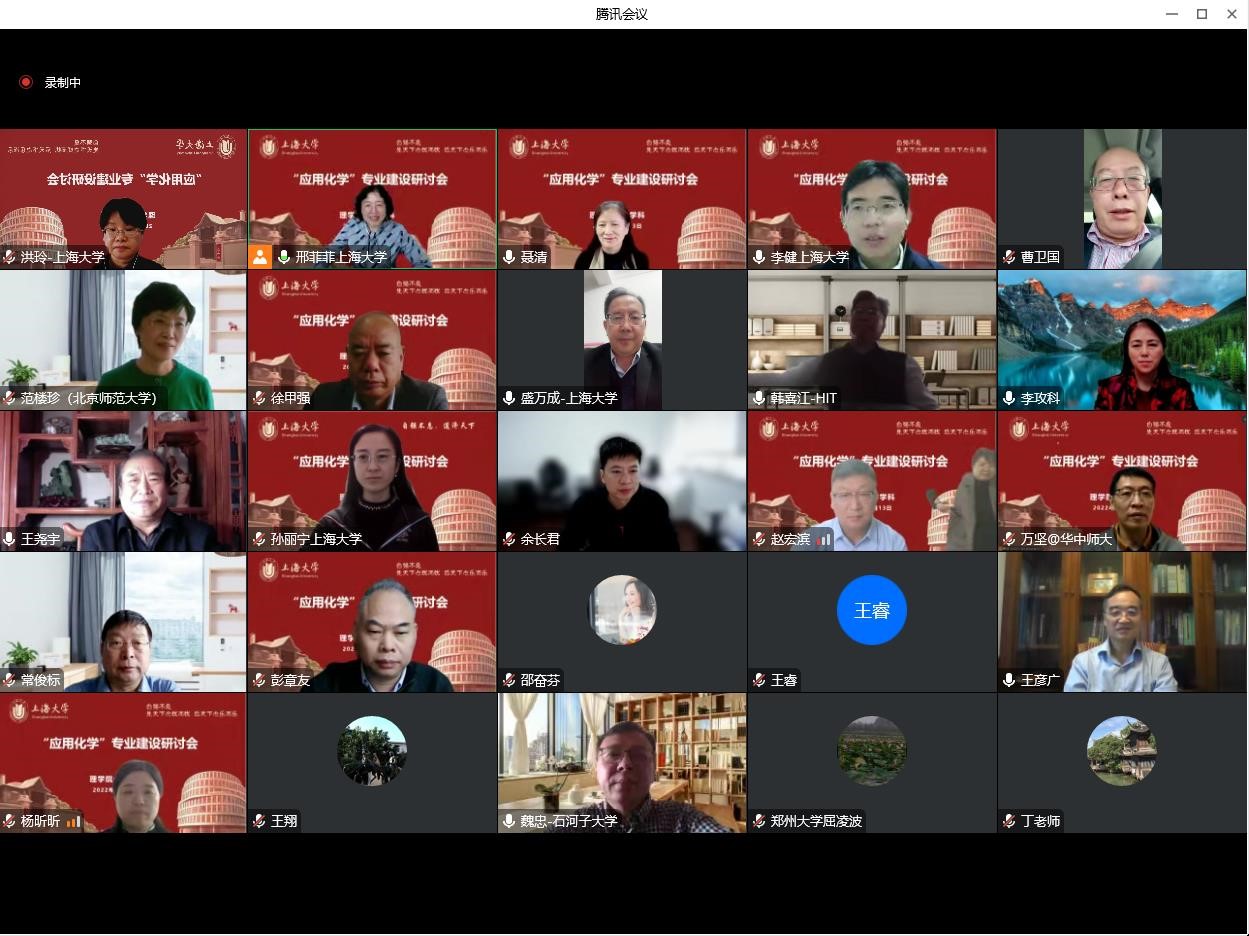 为了深入学习贯彻党的二十大精神,纪念上海大学建校100周年,进一步研讨化学一流本科专业建设,提升学科整体水平,加快化学创新人才培养,推进相关改革举措,11月13日,应用化学专业建设研讨会在线上举行。