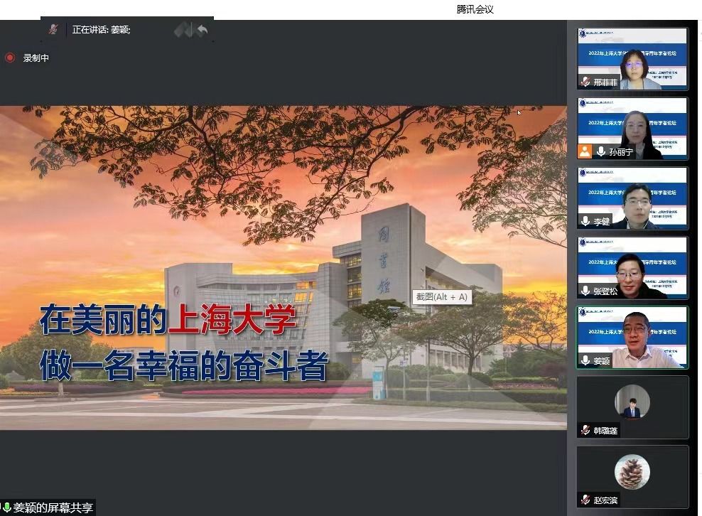姜颖教授回顾了自己在上海大学工作成长的经历和感悟,分享了上海大学的“美丽”、“温暖”和“奋进”,介绍了学校的历史、总体概况,并对人才引进相关政策进行了详细解读。