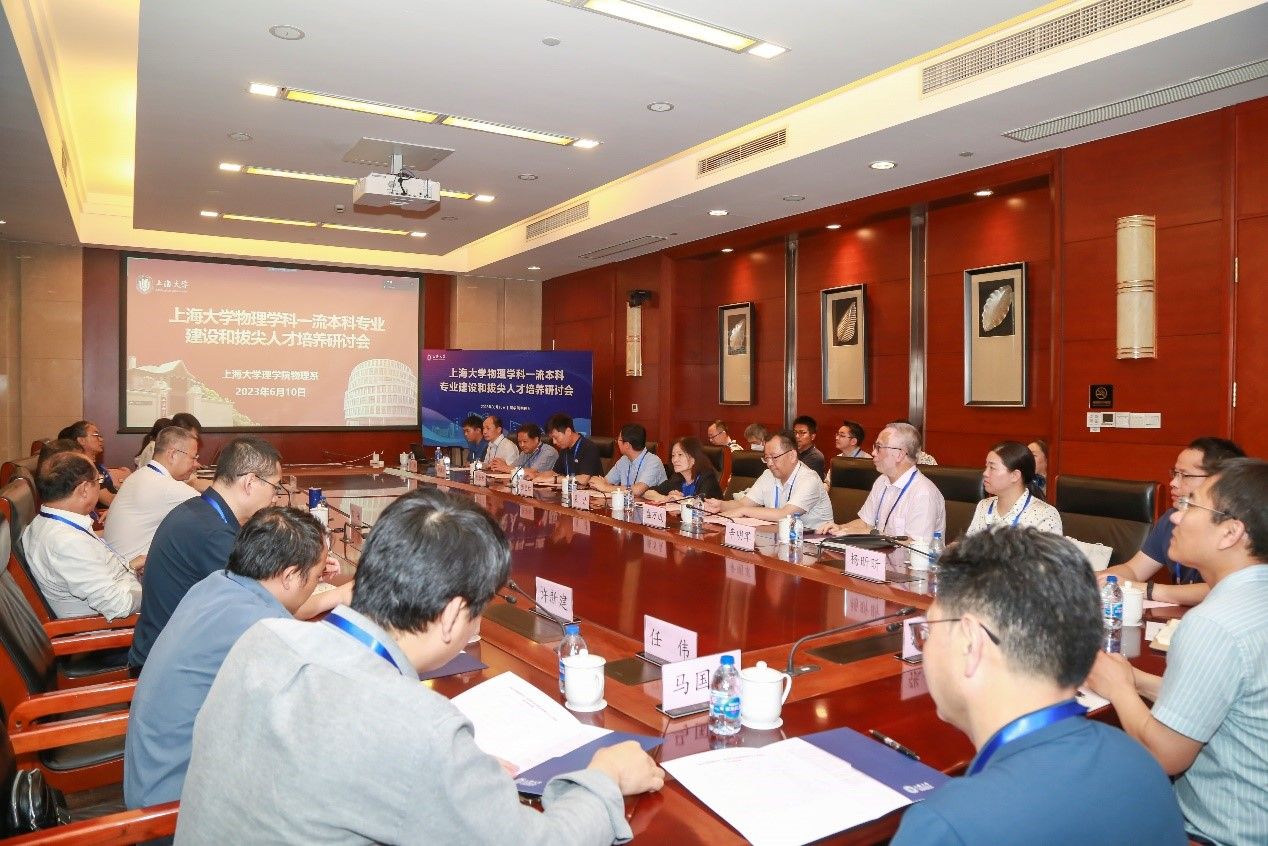 6月10日,上海大学物理学科一流本科专业建设和拔尖人才培养研讨会在乐乎新楼大学厅顺利召开。受上海大学特聘教授钟建新(长江学者、国家万人计划教学名师)邀请,教育部物理类专业教学指导委员会专家一行,汕头大学副校长陈敏教授(教指委秘书长、国家万人计划教学名师)、吉林大学张汉壮教授(教指委副主任委员、国家万人计划教学名师)、北京大学刘玉鑫教授(指导委员会副主任委员、国家万人计划教学名师)、南京大学吴小山教授(指导委员会副主任委员、国家万人计划教学名师),以及南开大学刘玉斌教授(教指委委员、国家万人计划教学名师)到上海大学乐乎新楼大学厅分享教育部新一轮审核评估、一流专业和课程建设、一流人才培养等方面的教育教学经验,并对上海大学物理学科一流本科专业和人才培养工作予以指导。