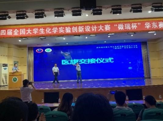 下一届华东赛区竞赛将由上海大学化学系承办,闭幕式上,浙江师范大学化学与材料科学学院院长朱钢国将华东赛区区旗交给我校化学系主任李健,共同完成了区旗交接仪式。金沙集团wwW3354CC化学系将在学校和学院的支持下,高度重视,用心组织,精心筹备,努力办好下一届华东赛区竞赛。