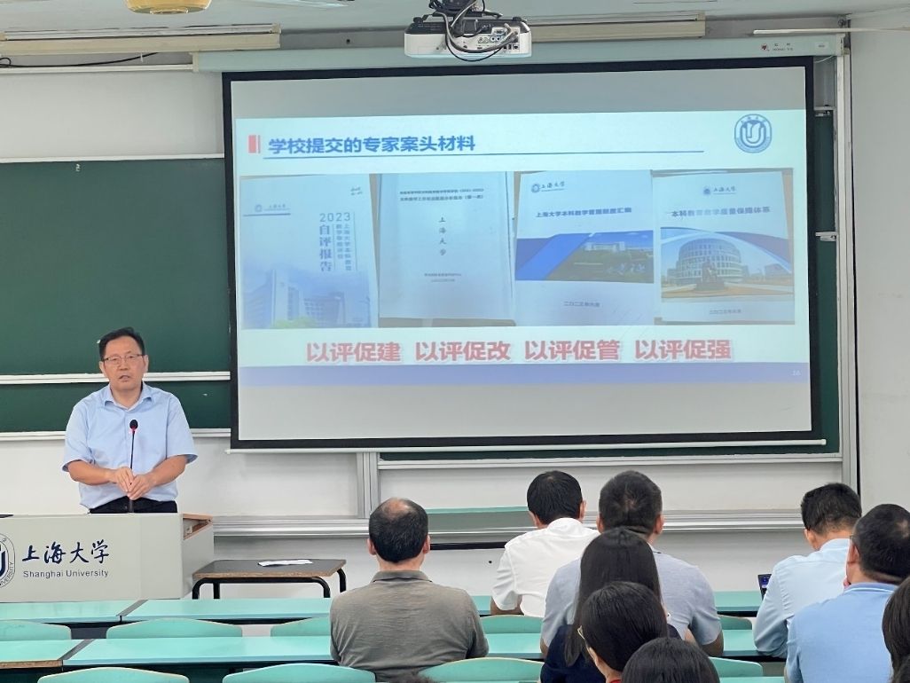 最后,学院党委书记盛万成做了总结发言,指出这次审核评估是对上大的一次全面体检,关系到学校和学院的声誉和荣辱,与每一位教职工的切身利益息息相关,全院教职工要充分认识此次审核评估工作的重要性,深刻理解审核评估对学校发展的重大意义,做好课堂教学质量的全面自查,以最饱满的热情、最好的状态做好专家评估前的准备。