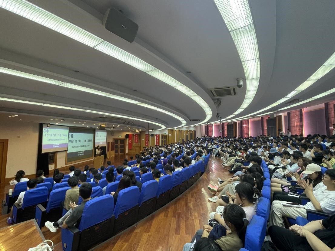 书院院长盛万成将院旗授予23级新生同学,并叮嘱秉承“厚基 博学 开放 创新”的院训精神,不断努力,紧接着为尚理书院全体新生带来“立大志,明大德,担大任,向未来”为专题的院长第一课。全面、生动又深刻地讲述了当今时代,人才对于国家、社会、各行各业发展的重大作用和意义。大学生除了以学为重,同时也要有志向,高尚的情操,希望同学们铭记时代使命,不负“请党放心,强国有我”的誓言,祝愿所有书院新生踏上绚丽之旅,开启美好生活!