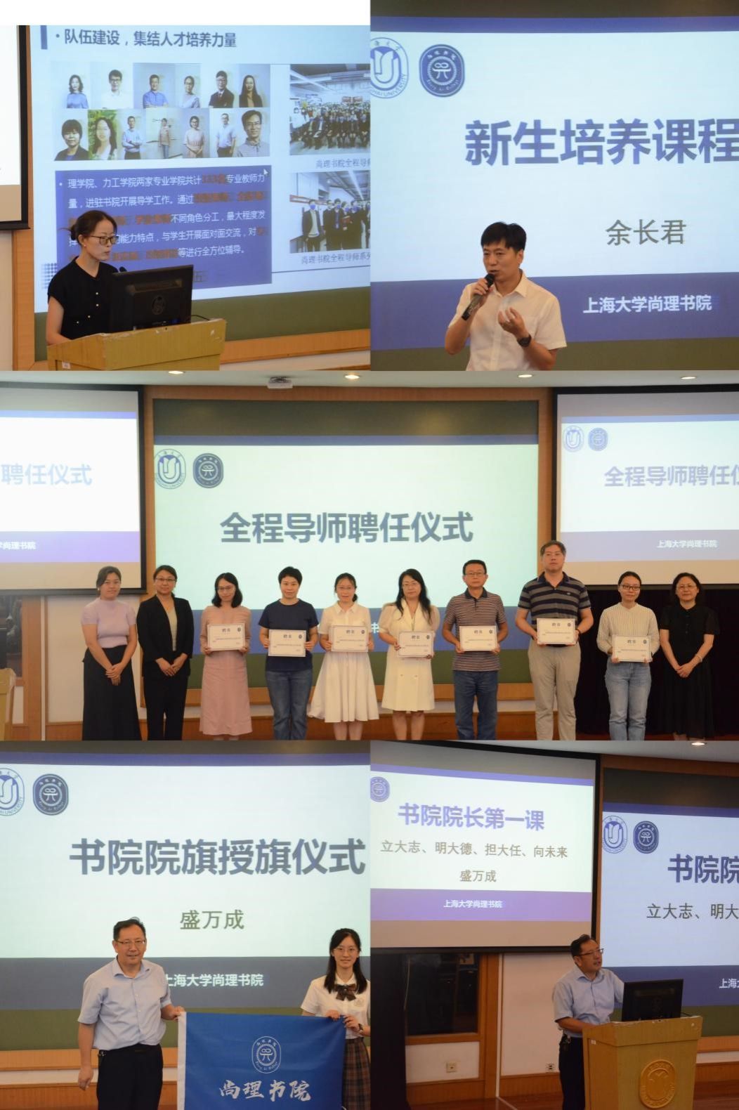 2023年9月8日星期五,“今日尚新 理应有你”上海大学尚理书院新生见面会暨尚理大讲堂在J202顺利举行。尚理书院院长、金沙集团wwW3354CC党委书记盛万成、执行院长、金沙集团wwW3354CC党委副书记、副院长姚颖冲,力学与工程科学学院党委书记郭兴明,社区学院院长尹静波,力学与工程科学学院党委副书记、纪委书记丁珏,党委副书记、副院长陈中元,社区学院党委副书记、副院长佟丽宁,金沙集团wwW3354CC副院长余长君。全程导师代表党政办水凌波;材料学院:郭昀、杨凯;金沙集团wwW3354CC:蔡文赫 、张凌峰、蔡敏、熊迪 ; 班导师代表,辅导员以及2023级尚理书院全体本科新生参加本次大会。