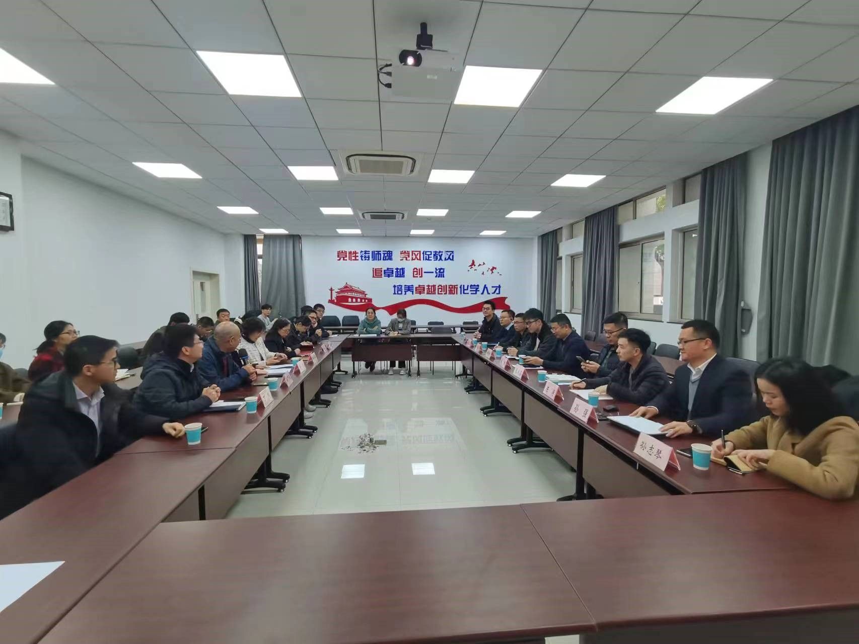 化学学科的多位老师先后发言,介绍了自己的研究方向、科研和育人工作。双方寻求科研和人才培养合作的机会,期望共同构建化学行业人才共培机制、搭建化学行业“产、学、研、培”四位一体的技术服务平台,在产学研一体化、就业与实习基地建设、人才培养上开展密切合作。