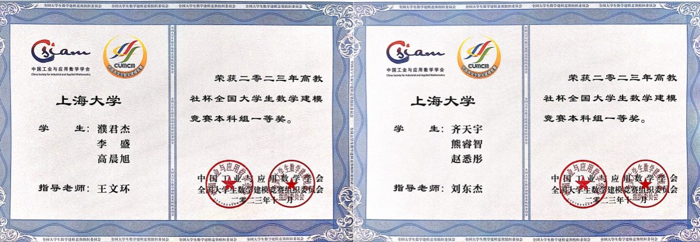 全国大学生数学建模竞赛创办于1992年,每年一届,是首批列入“高校学科竞赛排行榜”的19项竞赛之一。2023年,来自全国及美国、澳大利亚、马来西亚的1685所院校/校区、59611队(本科54158队、专科5453队)、近18万人报名参赛。本届比赛共评选出本科组全国一等奖299项,获奖率为0.55%;全国二等奖1200项,获奖率为2.2%。此次比赛,上海大学共选拔51支队伍参赛,共获全国一等奖2项(指导教师分别是我院数学系刘东杰老师和王文环老师),全国二等奖4项,取得上海大学近几年来的最好成绩。参赛学生来自金沙集团wwW3354CC、计算机学院、通信与信息工程学院等。