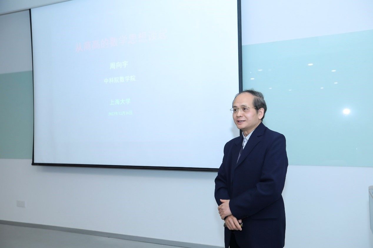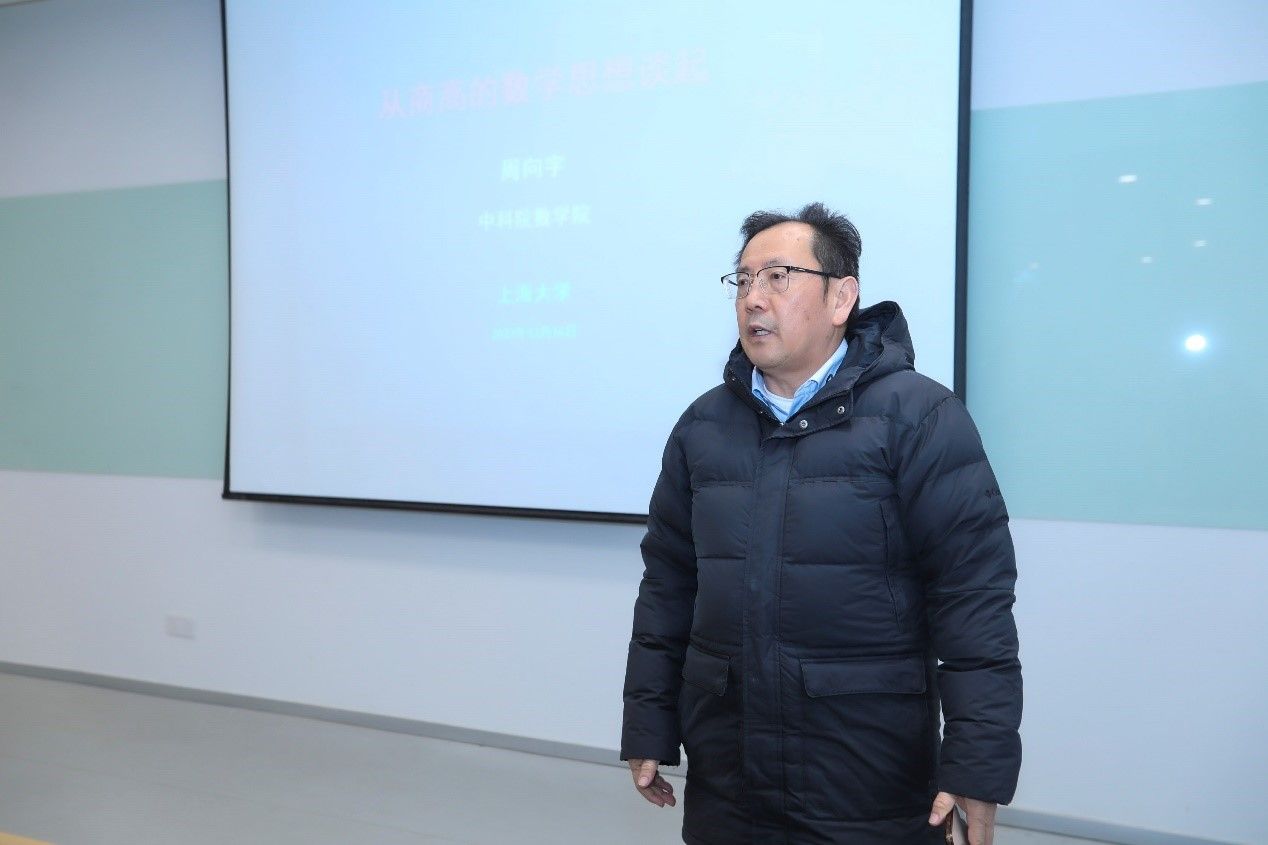 中国科学院周向宇院士做题为“从商高的勾股定理证明谈起”的学术报告。报告由金沙集团wwW3354CC党委书记盛万成教授主持。周向宇院士的演讲从中国古代数学中重要的商高对勾股定理,介绍了其中的几何思想与方法以及商高-赵爽的“形体不变量”思想,继而介绍了墨子半分思想及其在极限理论中的应用。周向宇院士的讲座增强了学生的文化自信与爱国情怀,激发了学生的学习热情。