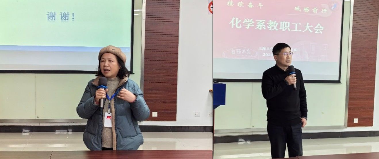 李健从学科建设、科研工作、人才培养、教学教改、实验室工作、安全工作等方面全面回顾总结了2023年的工作,并希望老师们积极申请国家自然科学基金。化学学科党总支书记邢菲菲介绍了上一年度的党务工作。他们衷心感谢化学系全体老师辛勤耕耘、踔厉奋发,助推化学系各项中心工作快速发展;并祝广大教师新年快乐。