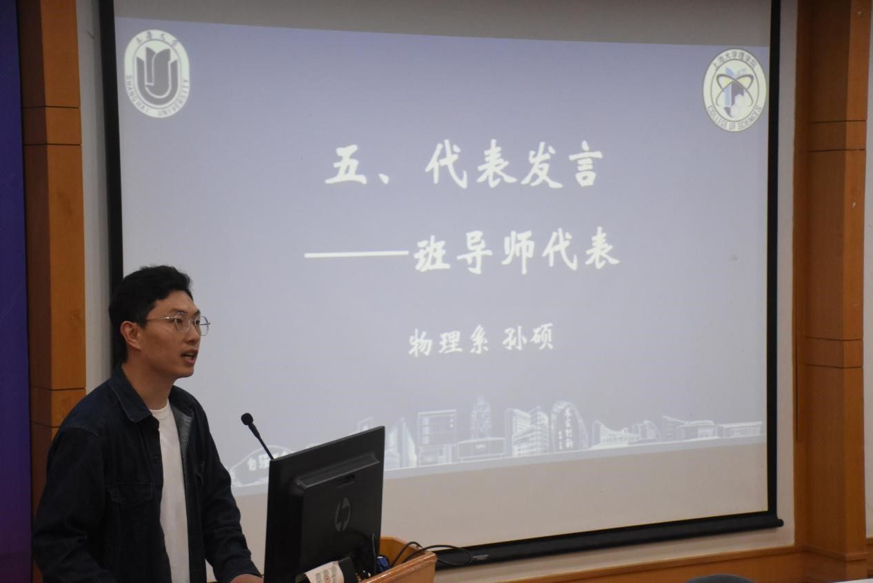 孙硕老师向新生致以热烈欢迎,并从学习、生活等方面提出建议,提醒新生要培养自学能力和独立思考的能力、鼓励新生积极参加校园活动,丰富课外生活。并鼓励新生树立远大的理想和目标,积极规划未来的学习和职业发展。