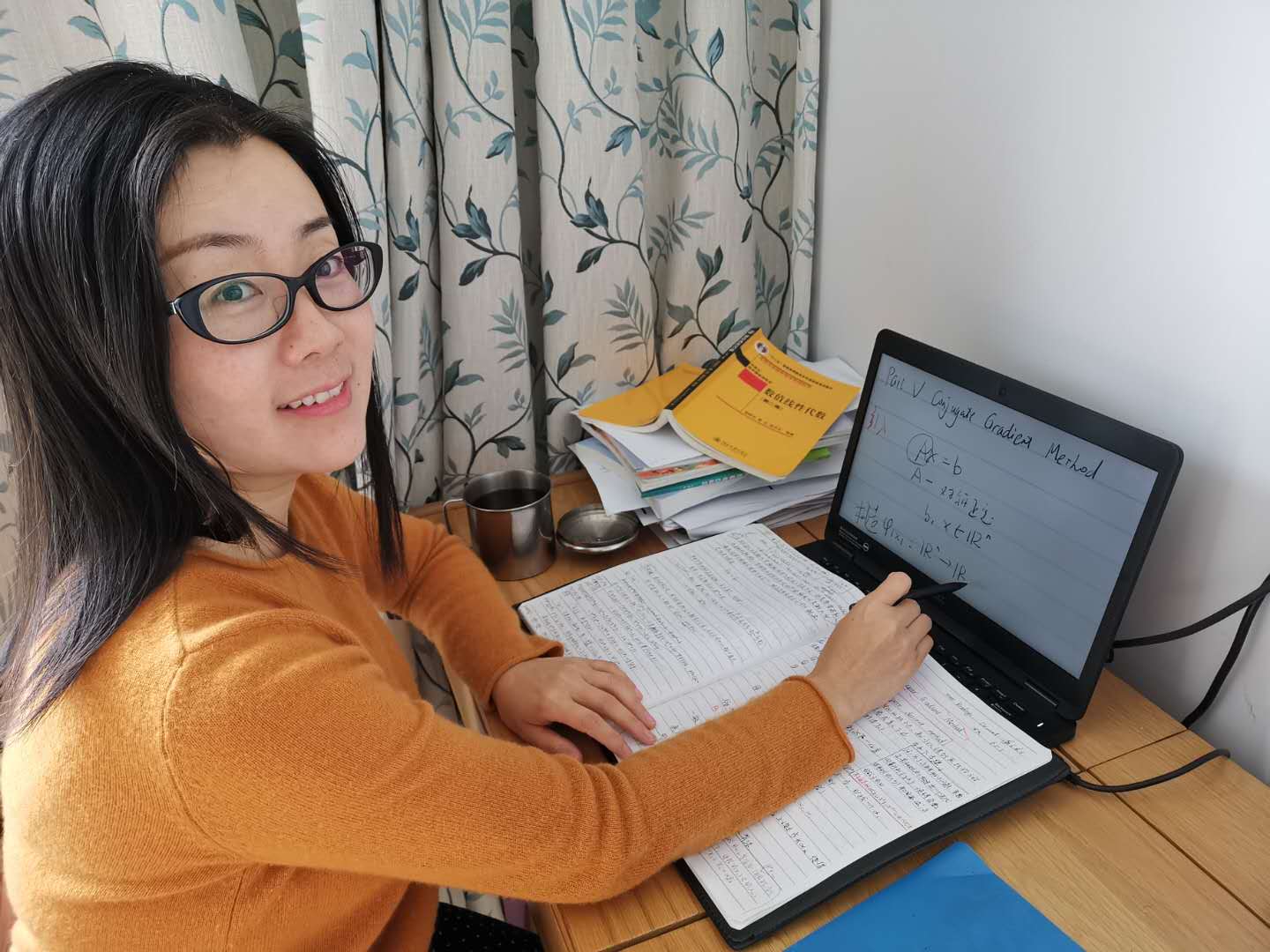 疫情当前,使我们无法面对面进行教学,而我所教的《数值计算方法》这门课一直用板书授课,在接到在线教学通知的时候,我就跟同学们商量过,同学们非常希望能够继续板书教学,这样能够学的仔细明白。于是我认真研究各类在线教学APP,最终锁定了腾讯会议,共享屏幕的方式,用手写笔在屏幕上边写边讲,写完之后的文档可以保存下来,直接转发给学生。课后同学们反应这基本上是目前实现板书教学最好的方式了。同时为了督促同学们认真听课,我在讲课的同时会不定时根据教学内容随机提问,而且我安排助教同时进会议室帮助我点名。最后希望同学们和全国人民一起共同抗疫,不要外出,做好防护,加强锻炼,不要忘记学习与规划,早日打赢疫情攻坚战,早日坐在课堂里,享受以往学习的乐趣。