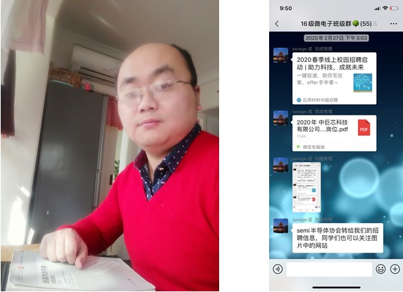 刘老师也十分关注同学们的考研、保研的复习和准备情况,经常与同学们进行沟通交流。在疫情防控期间,刘老师也经常分享各大名校考研生、直研生的心得和经验,也为同学们分享历代上大微电子优秀学长们的经验,为考研保研的同学们保驾护航。