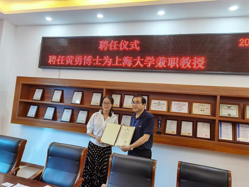 最终校企双方达成共识,成功签署了就业和实习基地协议,成立上海大学光电子生产实习基地,同时签署成立上海大学康阔奖学金,旨在鼓励优秀学子刻苦学习和研究。在之后的聘任仪式上,姚颖冲副书记向黄勇博士颁发了其共同参与的上海大学教学成果一等奖证书及聘任证书,聘任黄勇博士为上海大学客座教授。