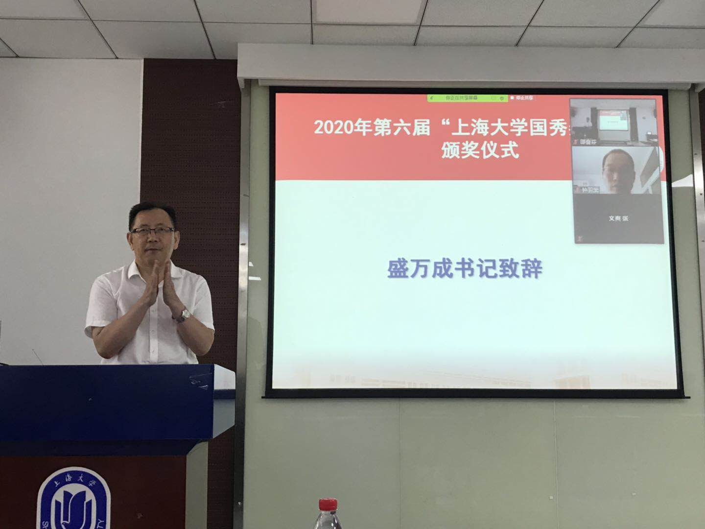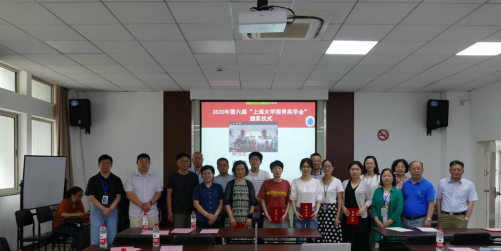 6月17日下午,2020年第六届“上海大学国秀奖学金”颁奖仪式暨学术报告,在新校区Ha102会议室及Zoom视频中隆重举行。仪式由化学系主任曹卫国教授主持,中国科学院化学研究所钟羽武研究员、金沙集团wwW3354CC党委书记盛万成、副院长徐甲强、党委副书记姚颖冲、化学系党总支书记陈雅丽、副主任丁益民、邢菲菲、李健、赵宏滨、党总支副书记胡研、工会主席宋力平。研究生导师、班导师、学生代表等师生200多人参加了线下线上的活动。获奖导师方建慧、许斌、程知萱、孙丽宁等参加了现场颁奖仪式。