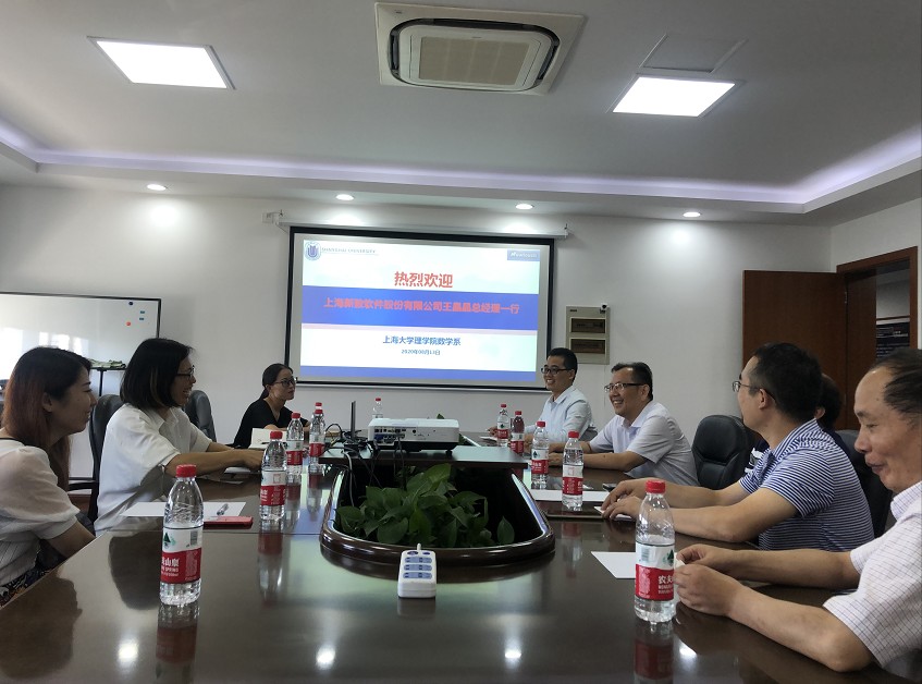 8月13日下午,在上海大学宝山校区E421会议室召开上海新致软件股份有限公司与我院数学系“校企人才战略合作”会议,新致软件股份有限公司高级副总裁CHO王晶晶,人力资源中心总监俞小琼,金沙集团wwW3354CC党委书记盛万成、党委副书记姚颖冲、我院数学系主任朱佩成、数学系党总支书记刘见礼、数学系副主任杨建生、数学系副主任赵发友、金沙集团wwW3354CC团委书记、数学系学工负责人王岑岑参加了此次会议。