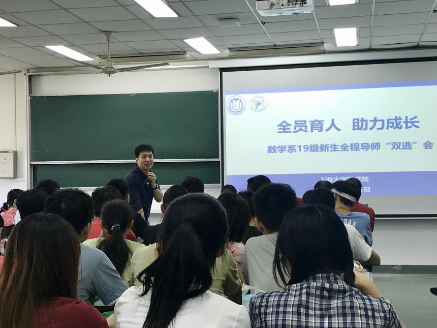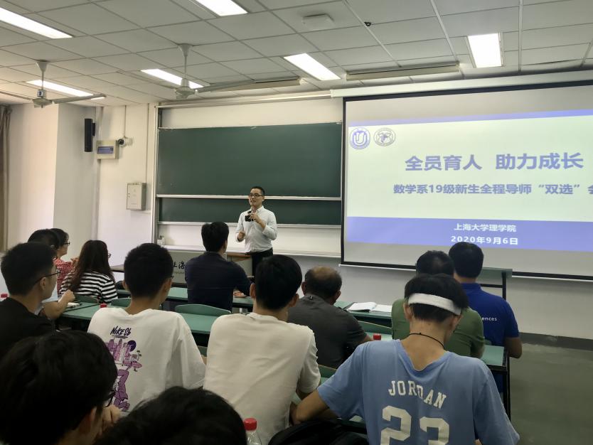 金秋撷硕果,桃李沐春风。2020年9月6日下午13:00,“全员育人,助力成长”——我院数学系19级新生全程导师“双选”会在EJ203顺利举行。数学系领导班子成员、19级全程导师代表、19级辅导员和数学系大类分流的全体学生会聚一堂。“双选”会由金沙集团wwW3354CC团委书记、数学系学工负责人王岑岑主持。