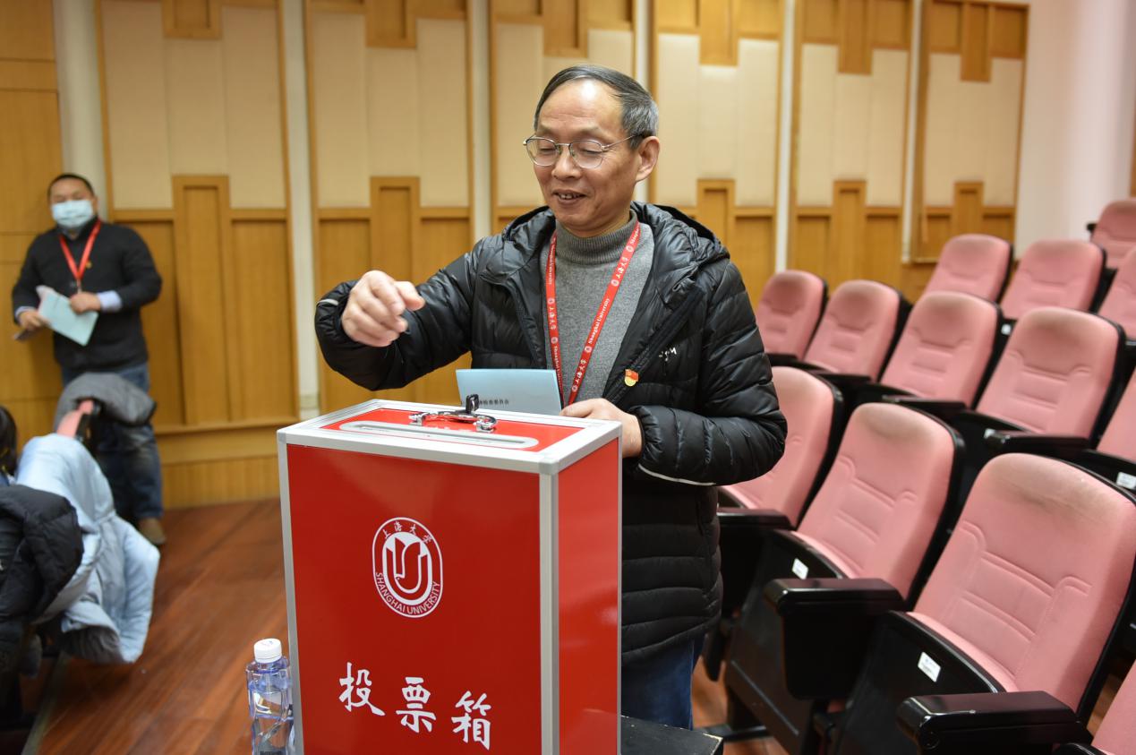 在计票过程中,大会特别隆重邀请到了著名社会学家、红色上大党史研究专家胡申生教授向全体党员做了《红色上大,百年传承》的精彩报告,胡老师用详实的史料、生动的故事和感人的话语,讲述了老上海大学作为中共第一所红色学府的历史沿革。在红色革命年代,老上海大学为中共党史、教育史发挥了重要作用,为中国共产党培养了一大批先进的革命党员。在新时代,新上海大学理应传承红色上大的精神,努力培养具有爱国主义精神、传承红色基因的新一代上大人。