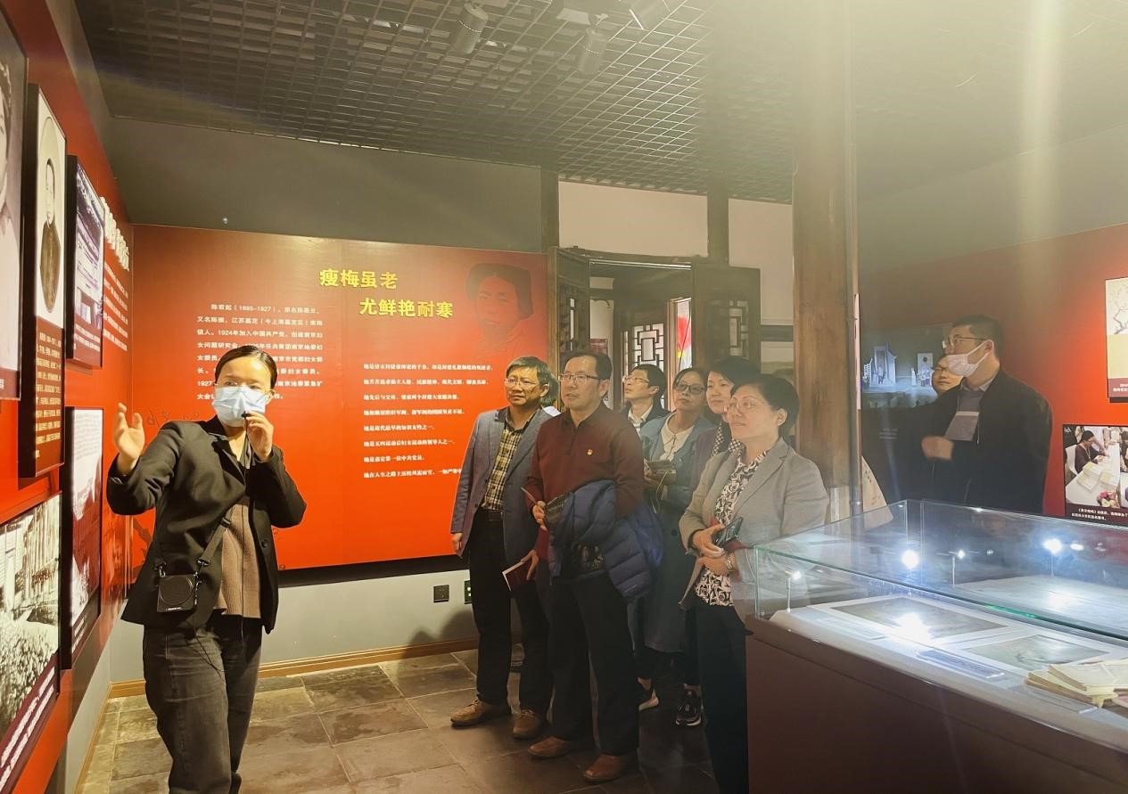 最后,为献礼建党百年伟业,重温历史、坚定信念,金沙集团wwW3354CC中心组一行来到南翔的爱国主义教育基地——陈君起纪念馆。该馆也是嘉定区党委中心组学习的基地之一。陈君起是嘉定第一位共产党员、第一位革命先烈,而且她与老上大渊源颇深,老上海大学教员恽代英、萧楚女曾以她的寓所居安里20号作为秘密机关。纪念馆从“瘦梅虽老·尤鲜艳耐寒”“逃婚求学·追求独立”“嫁入朱门·毅然再逃”“投身革命·母子入狱”“再次被捕·壮烈牺牲”“缅怀英烈·初心永在”等几个方面追溯了她的一生。结合金沙集团wwW3354CC党委前期开展的红色百年上大历史寻访工程,陈君起与老上海大学的革命志士有着紧密的联系,还与老上大人一起参与过五卅爱国运动,有很多可以佐证的珍贵史料。金沙集团wwW3354CC党委与该馆负责人就进一步开展党史学习教育和联建达成了初步合作意向,也希望双方进一步加强互动交流。