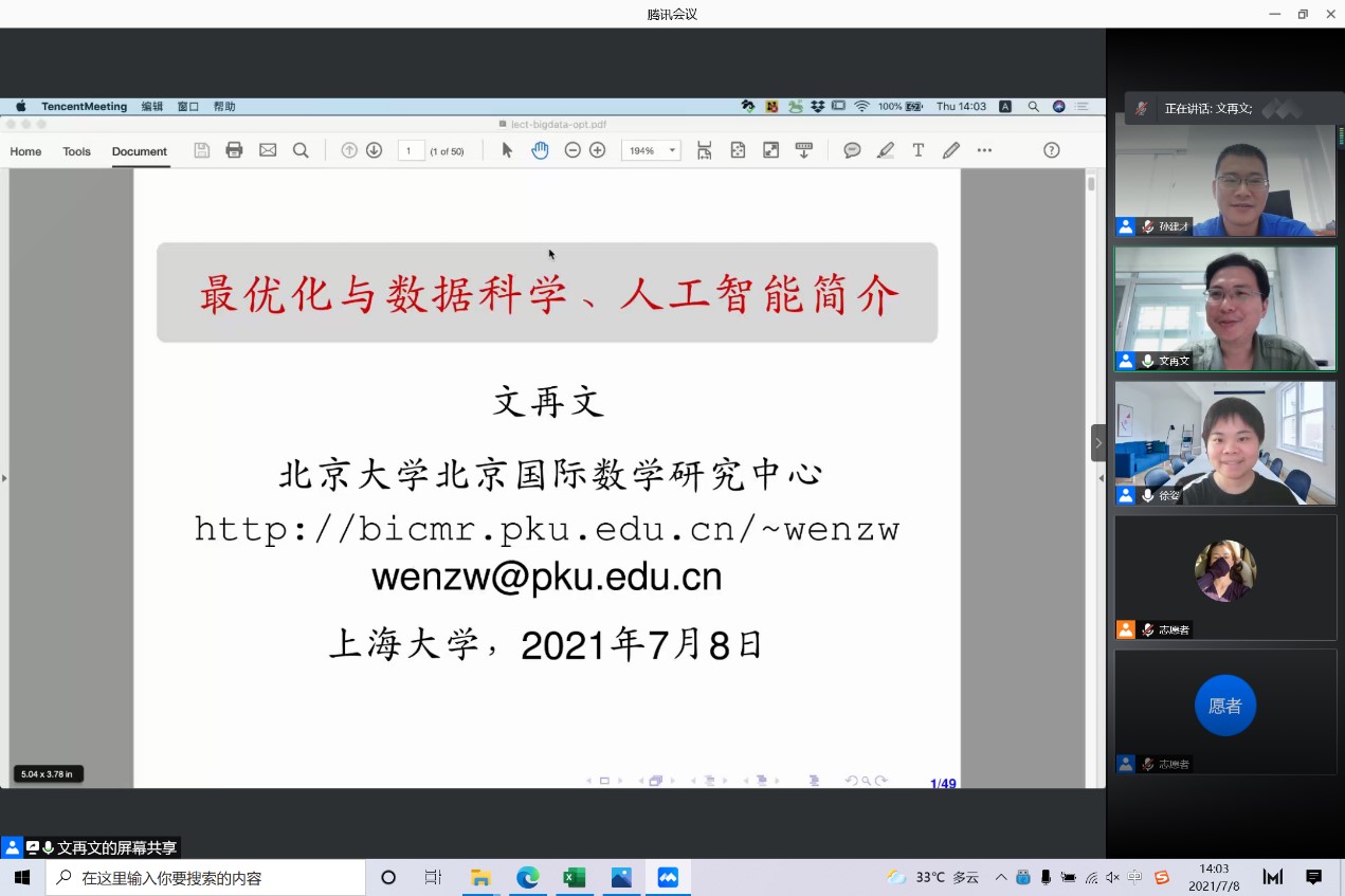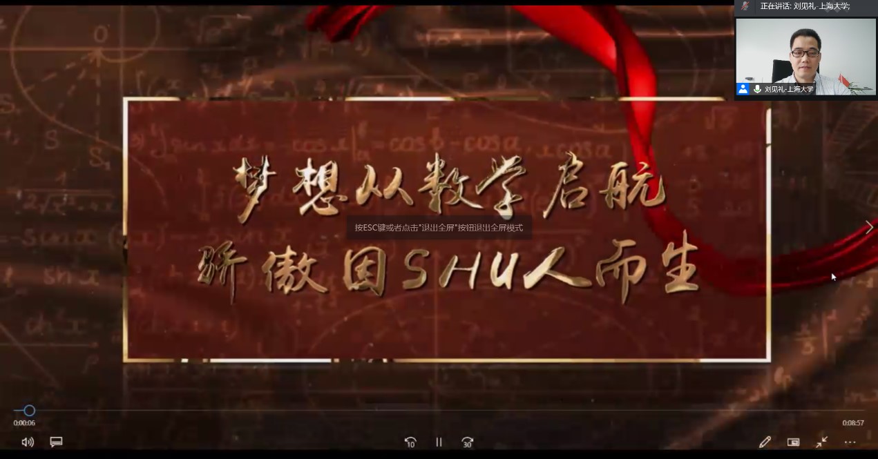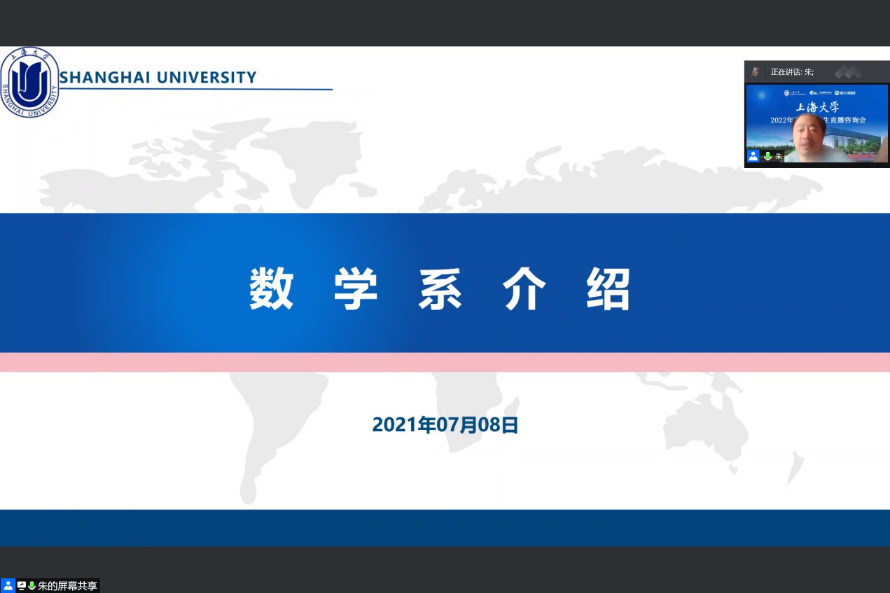 夏令营于8日上午9:00开幕,上海大学数学系党总支书记刘见礼副教授致欢迎辞,系主任朱佩成教授代表数学系对各位同学表示热烈欢迎,并介绍了数学学科。数学系副主任赵发友教授等出席了线上开幕式,开幕式由数学系副主任孙建才副教授主持。