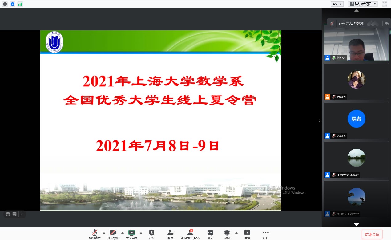 夏令营于9日下午圆满落幕。本次线上夏令营促进了高校数学本科生的交流与互动,拓展了本科生学术视野,强化了本科生创新意识,提高了本科生科研水平和创新能力,增进了国内高校大学生对上海大学数学系的了解。