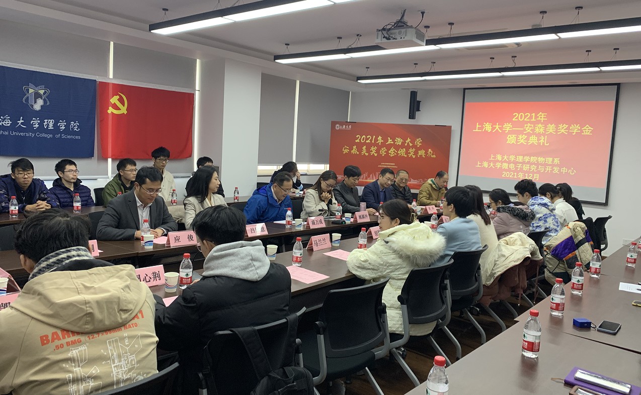 12月3日下午13:00,金沙集团wwW3354CC与安森美企业于宝山校区E408会议室隆重的举行2020—2021学年安森美奖学金颁奖典礼。金沙集团wwW3354CC党委书记盛万成,党委副书记、副院长姚颖冲、金沙集团wwW3354CC副院长余长君、金沙集团wwW3354CC副院长戴晔、微电子中心负责人严利民、和安森美企业代表东亚区销售及研发中心人力资源总监吕欣慧女士、安森美中国区销售总监应俊先生、安森美碳化硅专家吴桐先生受等受邀出席此次颁奖典礼,此外,到场的还有获奖同学、以及物理系21级的本科生同学们,每一位到场的嘉宾与获奖同学们对此次颁奖典礼充满了热切的期待。伴随着主持人物理系党总支书记颜明精彩的开场词,本次颁奖典礼的序幕缓缓拉开。