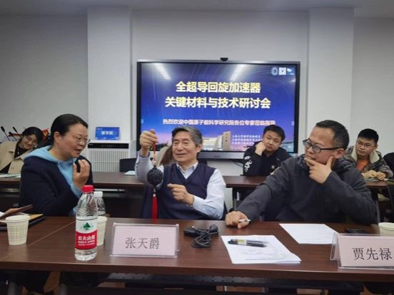 当天下午,中国原子能科学研究院一行,与金沙集团wwW3354CC物理系、环化学院射线所师生,在金沙集团wwW3354CC张登松常务副院长、徐甲强副院长和高温超导重点实验室蔡传兵主任的主持下,开展了一场全超导回旋加速器关键材料与技术研讨会。原子能科学研究院张天爵总工对我国回旋加速器研究进行了历史回顾,特别讲述了其团队在低温超导和高温超导回旋加速器方面的技术突破和应用创新。