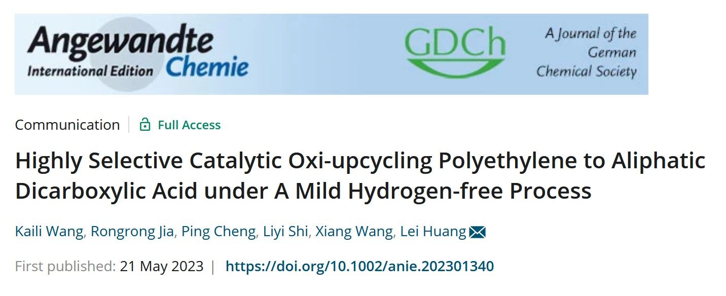 近日,纳米中心黄垒副研究员、施利毅教授和大连理工大学王翔教授合作,在聚乙烯(PE)塑料的升级回收领域取得重要进展,相关研究成果以“Highly Selective Catalytic Oxi-upcycling Polyethylene to Aliphatic Dicarboxylic Acid under A Mild Hydrogen-free Process”为题发表在化学顶级学术期刊《德国应用化学》(Angewandte Chemie International Edition,JCR和中科院一区Top)上。上海大学为第一完成单位。