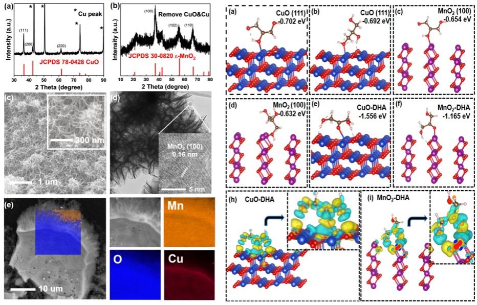 图1 MnO2-CuO/CF的表征和DFT模拟