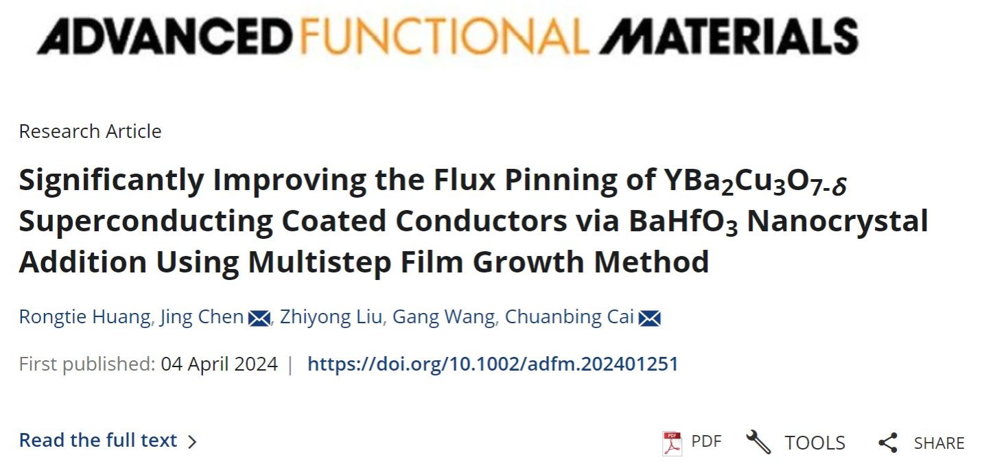 近日,金沙集团wwW3354CC物理系、上海市高温超导重点实验室蔡传兵教授团队联合材料科学与工程学院王刚教授团队,通过纳米异质相的可控制备和量子磁通的有效钉扎,进而大幅度提升了YBa2Cu3O7-𝜹 (YBCO)高温超导涂层导体磁场中的性能。相关研究结果在最近出版的国际高水平期刊《Advanced Functional Materials》上发表题为“Significantly Improving the Flux Pinning of YBa2Cu3O7-𝜹 Superconducting Coated Conductors via BaHfO3 Nanocrystal Addition Using Multistep Film Growth Method”的研究论文。上海大学物理系为第一完成单位和第一通讯作者单位,2021级博士生黄荣铁为第一作者,主要作者包含蔡传兵教授、王刚教授、刘志勇副教授,博士后陈静,其中金沙集团wwW3354CC博士后陈静和蔡传兵教授为该论文共同通讯作者。