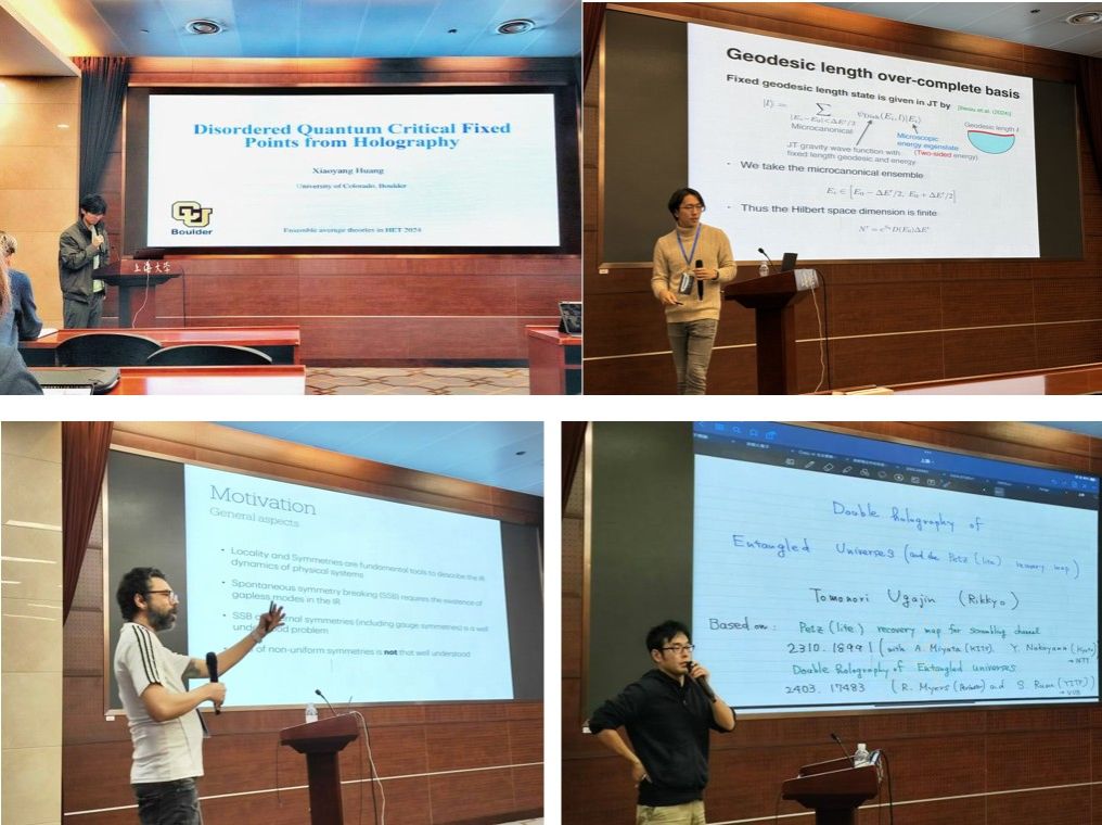 会议期间,学术报告与茶歇、海报展示环节为与会人员提供了充分的交流平台。与会者不仅分享了各自的研究成果,也就当前高能物理中的一些核心问题进行了深入讨论。例如,关于量子混沌、黑洞信息悖论及全息对偶等问题的前沿探讨,激发了新的研究思路和合作意向。