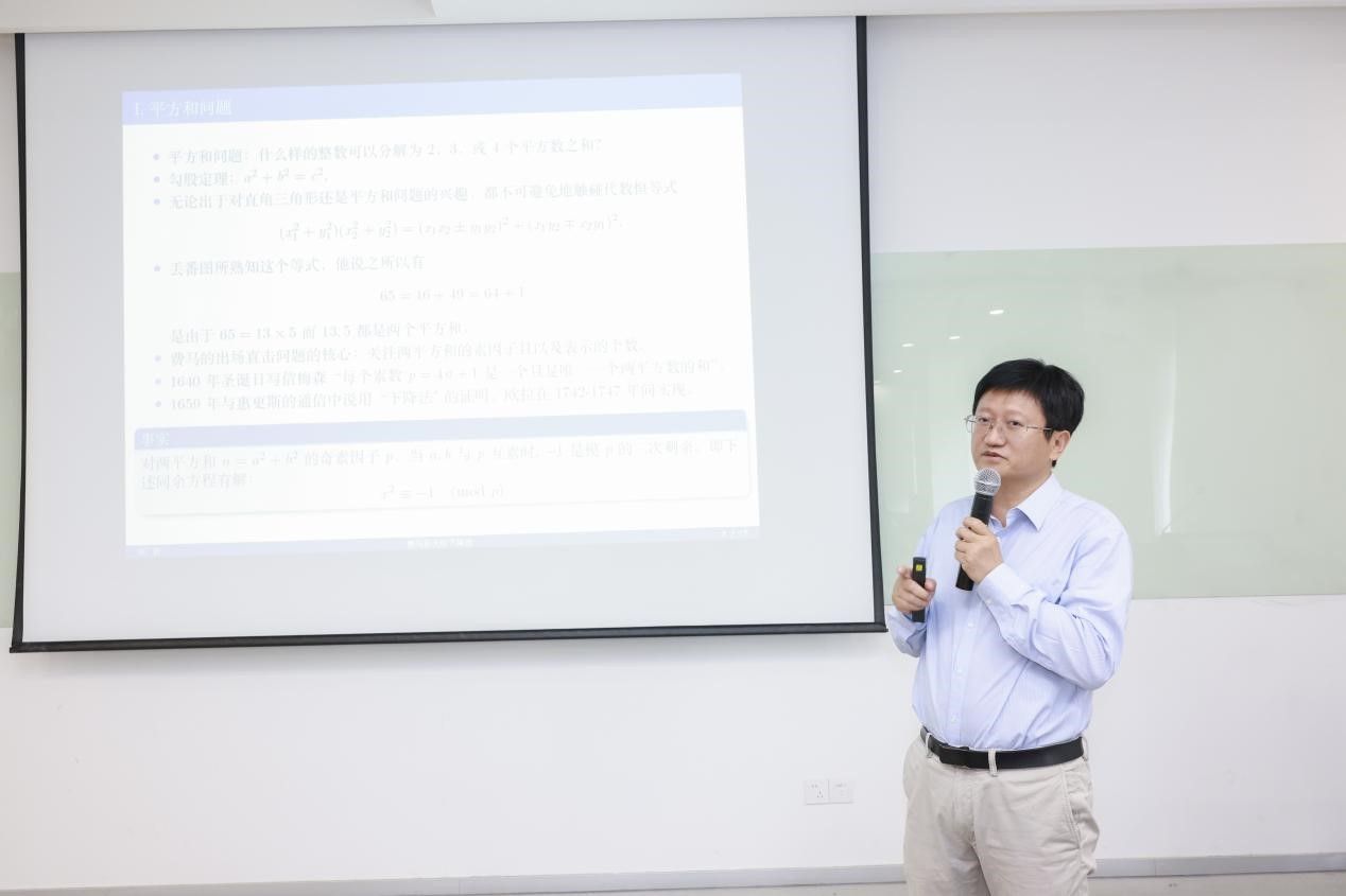 田野院士以费马的工作为线索,回顾了数论关键概念的诞生过程。他首先剖析了费马证明平方数性质、提出费马定理的思维方法,介绍了费马提出的无穷下降法,探讨其在数论经典问题中的应用,指出这些证明中蕴含的思想已初具“群”“环”“域”等代数结构的雏形。在讲解费马对佩尔方程整解的探索时,田院士特别强调了辗转相除法在这一研究中的重要作用。最后,田院士介绍了费马著名的“同余数问题”以及如何利用“无穷下降法”证明莫德尔-韦伊定理。
