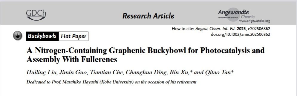 近日,金沙集团wwW3354CC化学系许斌教授、谭启涛教授团队在碗状共轭分子领域取得重要进展,相关研究结果以“A Nitrogen-Containing Graphenic Buckybowl for Photocatalysis and Assembly with Fullerenes.”为题发表在化学领域顶级学术期刊《德国应用化学》(Angewandte Chemie International Edition,JCR和中科院一区Top)上并被选为热点文章。该论文第一作者为2021级硕博连读研究生刘惠凌,上海大学为第一作者单位和第一通讯作者单位。