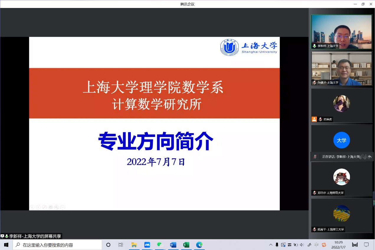 孙建才副教授做了数学系研究生招生政策宣讲。参加线上夏令营的师生发言踊跃,交流思想,分享心得。