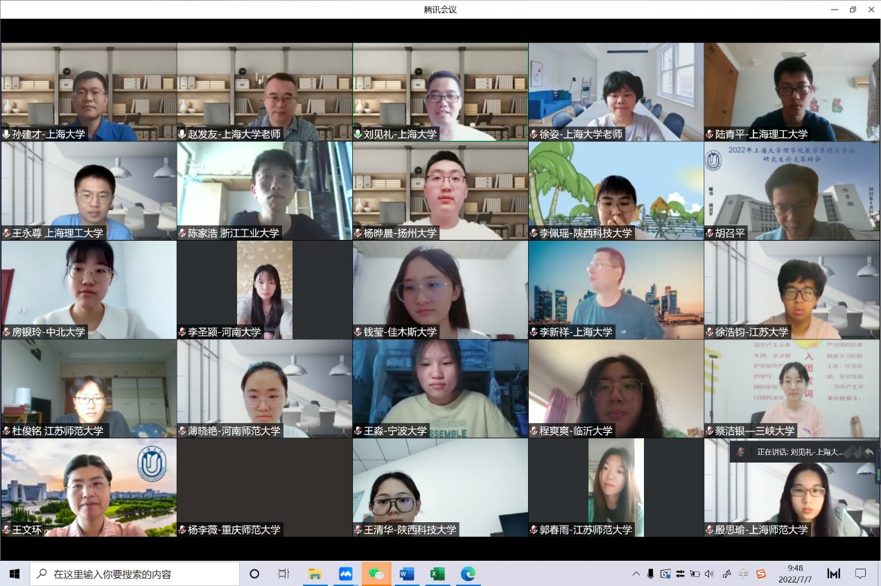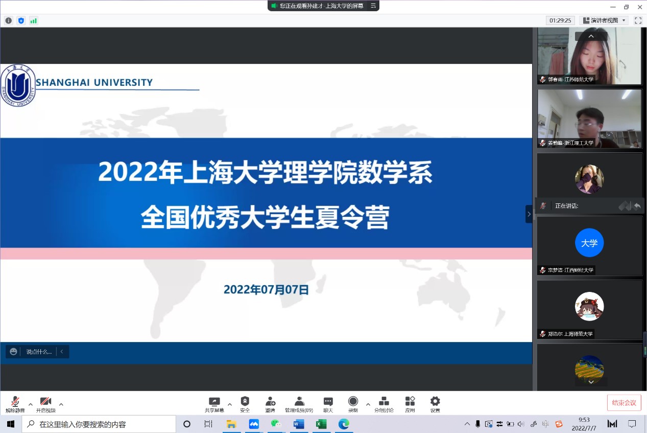 夏令营于8日下午圆满落幕。本次线上夏令营促进了高校数学本科生的交流与互动,拓展了本科生学术视野,强化了本科生创新意识,提高了本科生科研水平和创新能力,增进了国内高校大学生对上海大学数学系的了解。