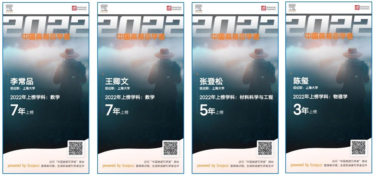 3月28日,爱思唯尔(Elsevier)正式发布了2022“中国高被引学者”(Highly Cited Chinese Researchers)榜单。该榜单覆盖了教育部10个学科领域的84个一级学科,共有来自504个高校、企业和科研机构的5216名最具全球影响力的中国学者入选。上海大学共有34位学者入选,其中金沙集团wwW3354CC7位教授入选,分别是李常品、王卿文、张登松、陈玺、张久俊、杰夫·瑞默斯、尤里·德科夫。