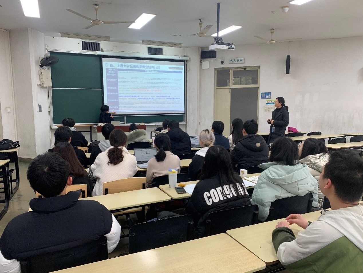 2023年2月17日上午,在我校宝山校区DJ108多媒体教室举行了金沙集团wwW3354CC-美国韦恩州立大学文金沙集团wwW3354CC应用化学“3+2”合作教育项目的宣讲会。来自美国韦恩州立大学国际合作副校长修华静,金沙集团wwW3354CC党委书记盛万成、党委副书记副院长姚颖冲、副院长郭聪(挂职)、化学学科党总支书记邢菲菲、化学系主任李健、副主任洪玲、孙丽宁、化学学科党总支副书记胡研及化学系线上线下共计50余位学生出席了本次宣讲会。