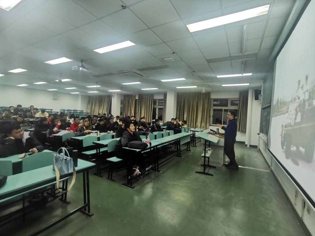 随后,陈然老师跟同学们介绍钱伟长老校长的治学之道和学术思想。他将钱伟长老校长的人生比作了“开挂了的人生”——考入清华弃文从理,从对理科一窍不通到在科学领域成就卓越。钱伟长老校长的一句:我没有专业,国家有需要的地方,就是我的专业,体现了他胸怀大志,心系国家。钱伟长老校长不仅在学术方面硕果累累,也有自己的兴趣爱好,热爱体育,全面发展的他更是给同学们树立了积极向上,乐观开朗的人生态度。
