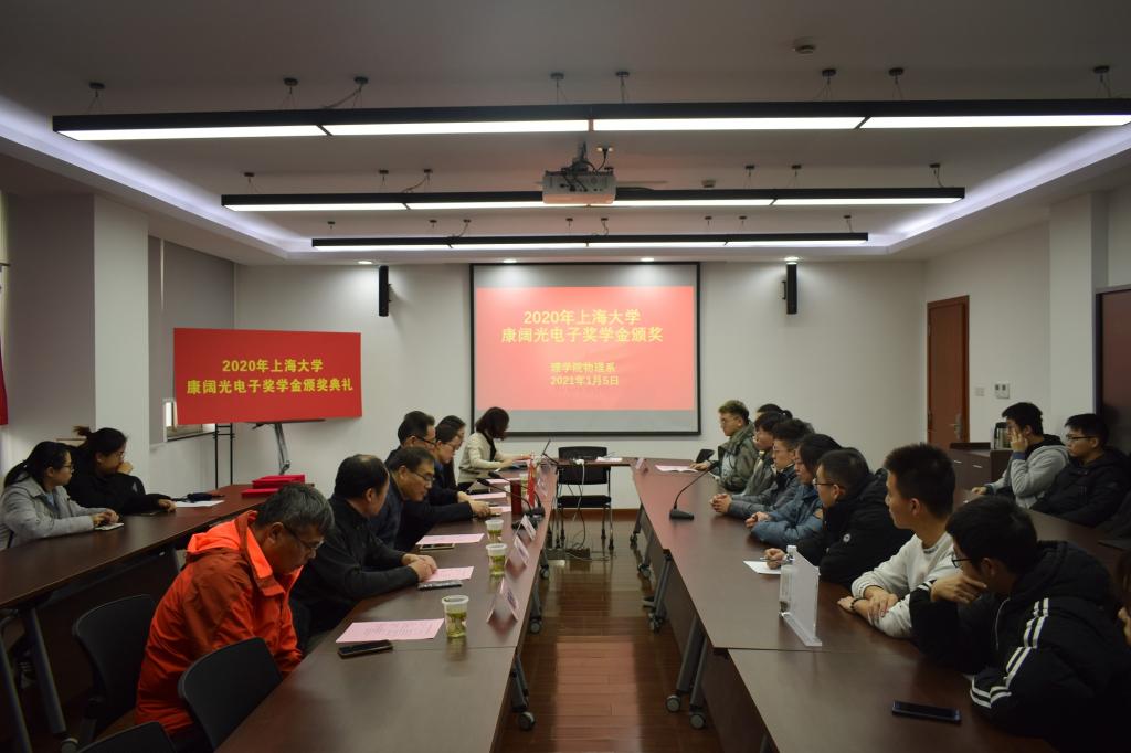 1月5日上午10点,金沙集团wwW3354CC康阔奖学金颁奖典礼在校本部E408举行。到场嘉宾有上海康阔光智能技术有限公司董事长黄勇、金沙集团wwW3354CC党委书记盛万成、金沙集团wwW3354CC党委副书记姚颖冲、物理系主任蔡传兵、物理党总支书记颜明、物理系教师代表施解龙和孔茜。颁奖典礼由物理系学工负责人周青利主持。