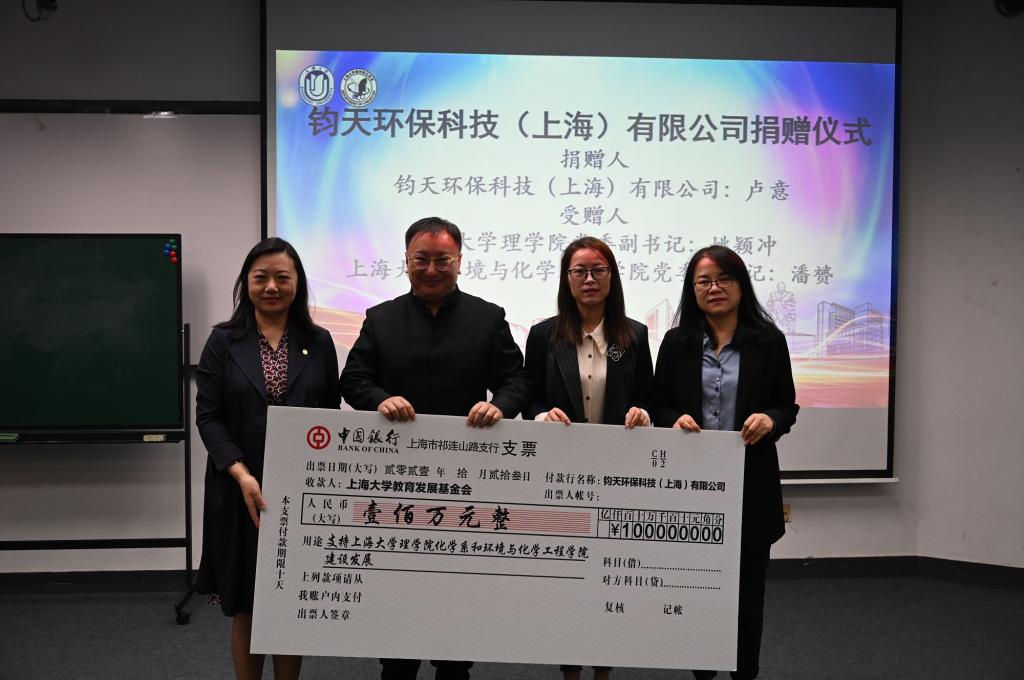 10月23日上午,上海大学钧天环保科技(上海)有限公司捐赠仪式——暨金沙集团wwW3354CC化学系校友奖学金颁奖典礼在J102隆重举行。上海大学对外联络处副处长杨静,均天环保科技(上海)有限公司董事长卢意、总经理戚雁俊,日之升科技有限公司董事长陈晓东,格桑创服董事长助理朱建忠,金沙集团wwW3354CC党委副书记姚颖冲、环境与化学工程学院党委副书记潘赟、钱伟长学院直属党总支副书记沈青松,金沙集团wwW3354CC化学学科党总支书记邢菲菲,化学系系主任曹卫国、副主任丁益民、洪玲及化学系、钱伟长学院的相关师生出席了捐赠仪式。仪式由来自化学系的本科生白郅昂和彭天馨主持。