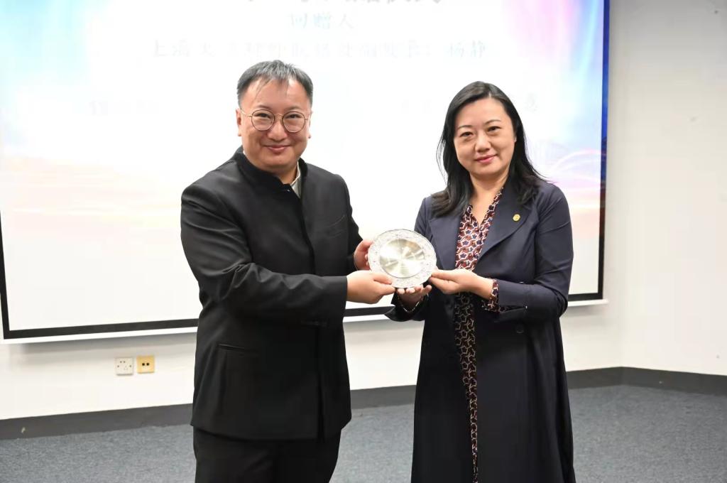 仪式上,金沙集团wwW3354CC化学学科党总支书记邢菲菲老师介绍了出席本次捐赠仪式的各位领导和嘉宾。仪式开始,上海大学对外联络处副处长杨静发表讲话,她肯定了均天环保科技(上海)有限公司在国家绿水青山建设中的做出的重要贡献。对校友们毕业后仍然心系母校、热心奉献、捐资助学的善举给予充分的肯定和由衷的感谢。钧天环保科技(上海)有限公司董事长卢意先生为金沙集团wwW3354CC化学系和环境与化学工程学院的学子们捐赠一百万人民币用于化学学科领域的学生培养,并为获得钧天未来之星化学奖学金的同学们颁奖。他表示,作为一家环保企业,要努力守护好祖国的绿水青山,同时也希望通过自己的努力能够为国家的人才培养做出贡献。对外联络处副处长杨静代表学校向他赠送了捐赠纪念银盘。来自钱伟长学院的刘泽远同学作为获奖代表发言,感谢捐赠的校友,同时表达了对化学的热爱和对未来学习的期待。