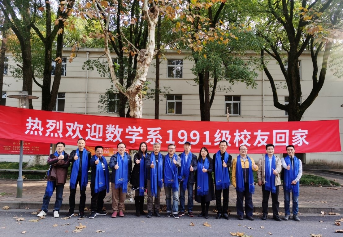 阳光正好,微风不燥。我院数学系为各位校友友返校准备了纪念品和欢迎横幅,更是让校友们深切感受到了学校和学院的温暖。大家在熟悉的当年数学系的会议室,共叙师生情、同学谊,共话母系发展。沐浴着秋日暖阳,带上具有数学系标志的蓝围巾,校友们再次走在校园里,回忆美好的大学生活,感叹当年的树木已成参天大树。大家纷纷表示一定努力工作,常回家看看,为母校发展贡献一份力量。