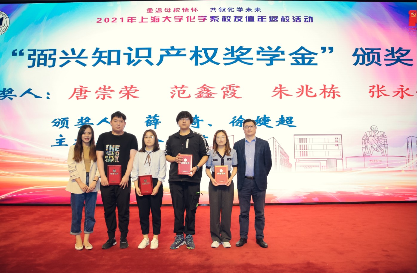 接着,3项校友奖学金举行了颁奖仪式,25名化学系本科生、研究生分获第七届国秀奖学金一、二、三等奖、年度最佳论文奖、弼兴知识产权奖学金。这3项奖学金分别由林院士、校友助资、校友企业上海弼兴律师事务所捐资成立。金沙集团wwW3354CC及化学系领导主持仪式,林国强院士、学院领导、老教师、校友代表为学生颁奖并合影。弼兴律所代表薛琦简介了企业情况,表示愿意支持化学系学子逐梦奋斗。第七届国秀奖学金一等奖获得者仲陆祎发言,分享了大学四年的学习成长经历,感谢化学系提供了良好学习锻炼的平台,并感恩校友们的支持。